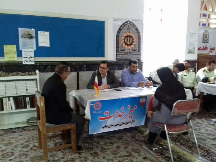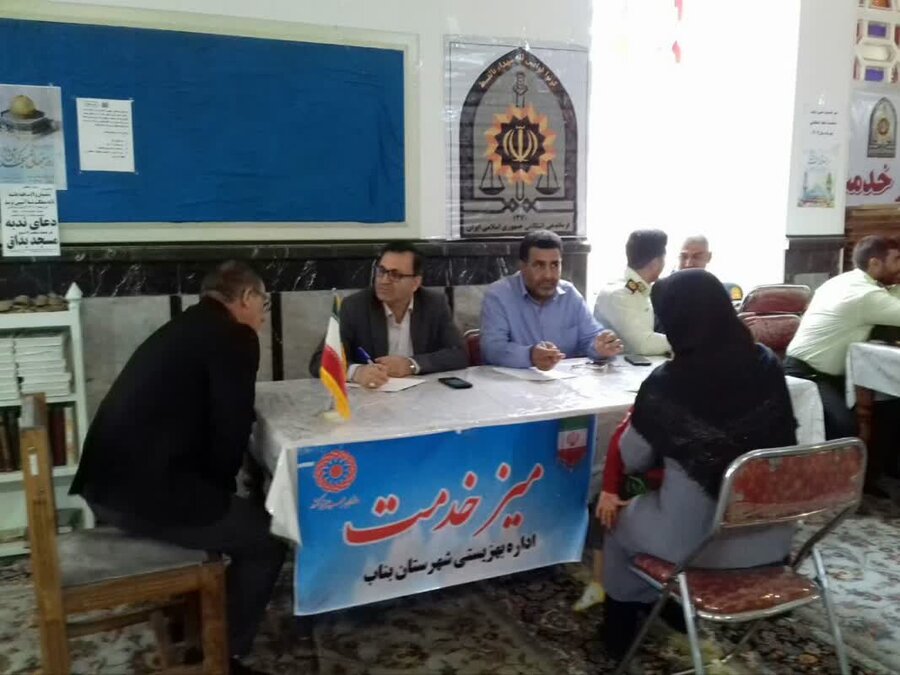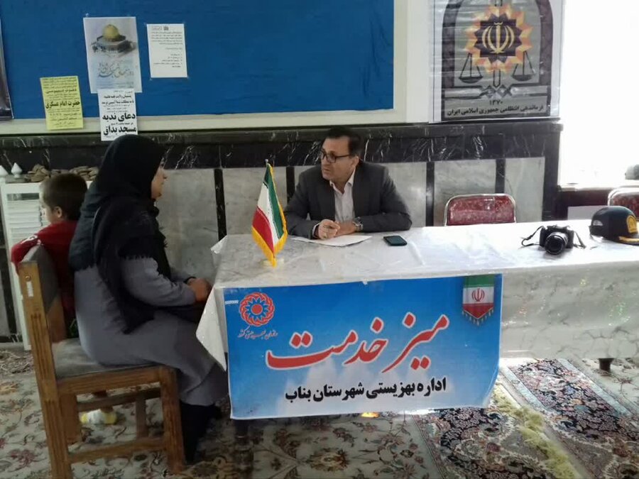 رئیس بهزیستی بناب به همراه کارشناسان بهزیستی بناب ضمن شرکت در نماز جمعه میز خدمت برپا کردند.در این میز خدمت زرین طلا و کارشناسان اداره پاسخگوی مراجعین بودند.