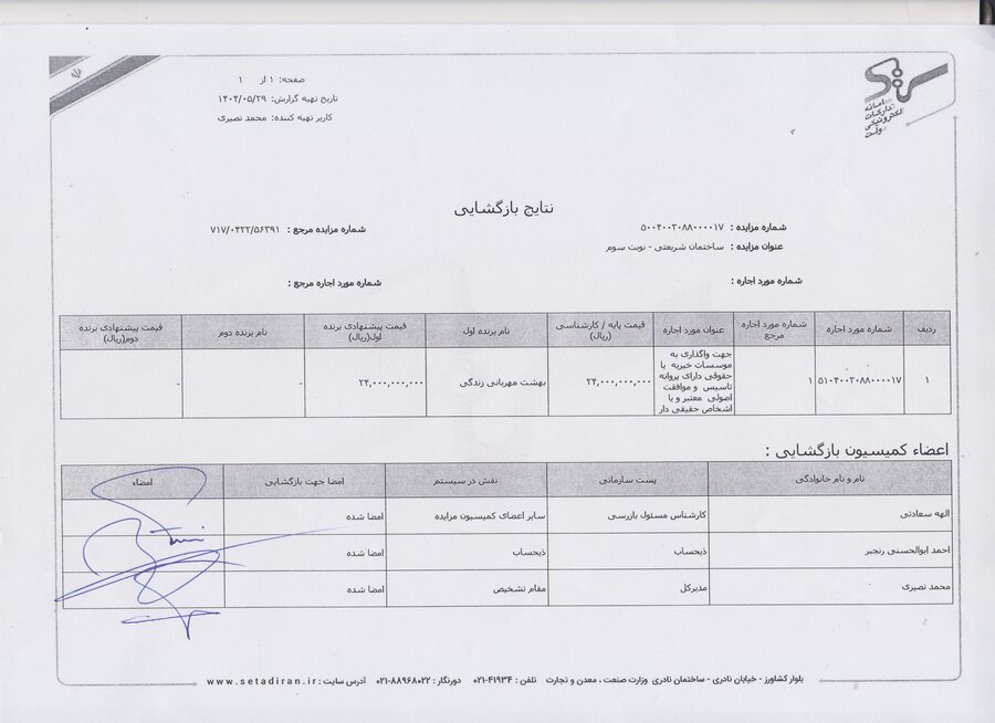 اطلاعات مزایده عمومی اجاره ساختمان اهدایی خدیجه امین تهرانی فراخوان در سایت اعلام برنده سامانه ای فراخوان سامانه ای گزارش بازگشایی