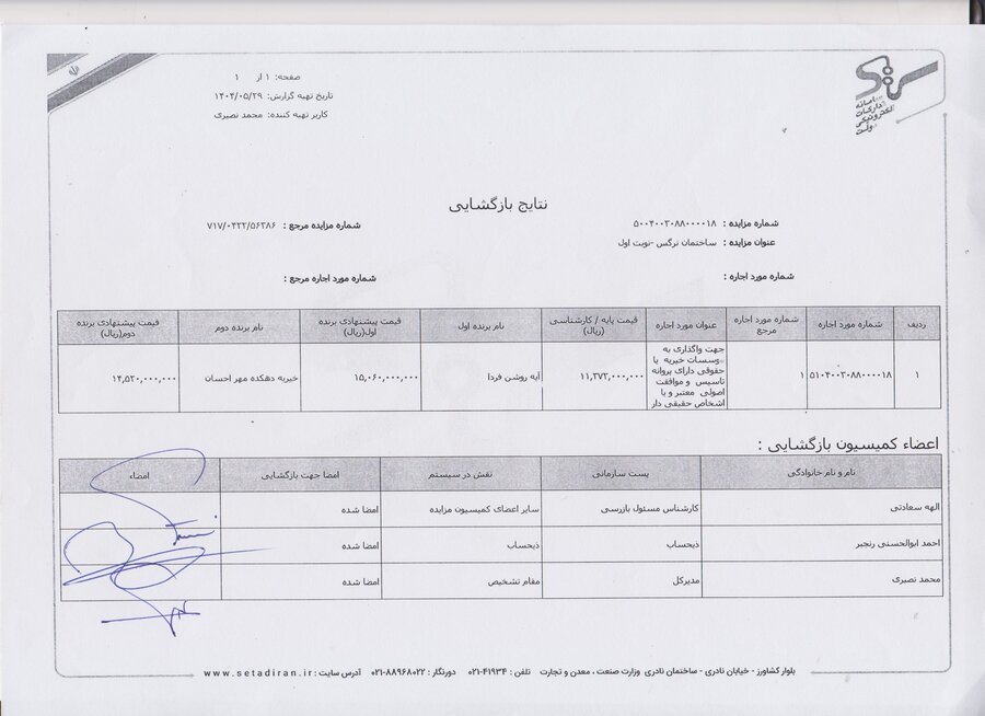اطلاعات مزایده عمومی اجاره ساختمان آهار فراخوان در سایت اعلام برنده سامانه فراخوان سامانه ای گزارش بازگشایی