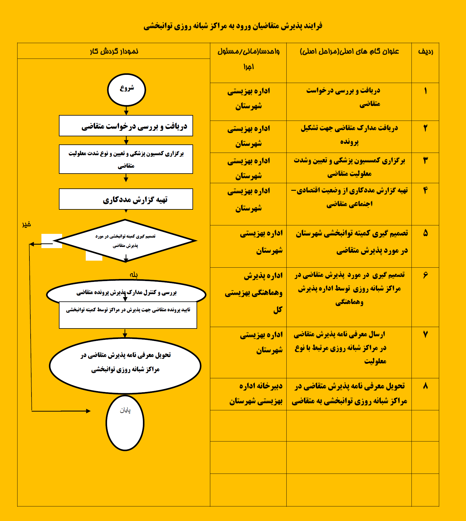 فرایند پذیرش متقاضیان ورود به مراکز شبانه روزی توانبخشی
