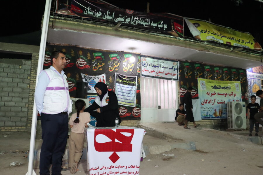 شامگاه چهارشنبه ۲۲مرداد ماه ، مهران کریمیان، مدیرکل بهزیستی استان و معاونین و مسئولان ستادی ، با همراهی روسای بهزیستی شهرستانهای دشتآزادگان، اهواز، هویزه و حمیدیه، از خدمات ارائه شده به زوار حسینی توسط خادمین و کارشناسان تیم های تخصصی اورژانس اجتماعی و محب موکب بهزیستی مستقر در مرز چذابه بازدید کردند.