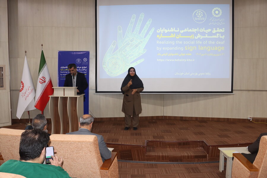صبح امروز ۸ مهرماه،آیین بزرگداشت روز جهانی ناشنوایان با حضور معاون سیاسی اجتماعی استانداری خوزستان، مدیرکل امور بانوان و خانواده استانداری خوزستان، مدیرکل امور اجتماعی و فرهنگی استانداری، مدیرکل آموزش و پرورش استثنایی، مدیرکل بهزیستی خوزستان، مدیران عامل انجمن های ناشنوایان استان و جمعی از ناشنوایان موفق در زمینه های علمی، هنری و ورزشی در سالن اجتماعات اداره کل بهزیستی خوزستان برگزار شد.