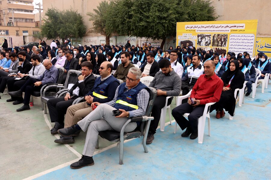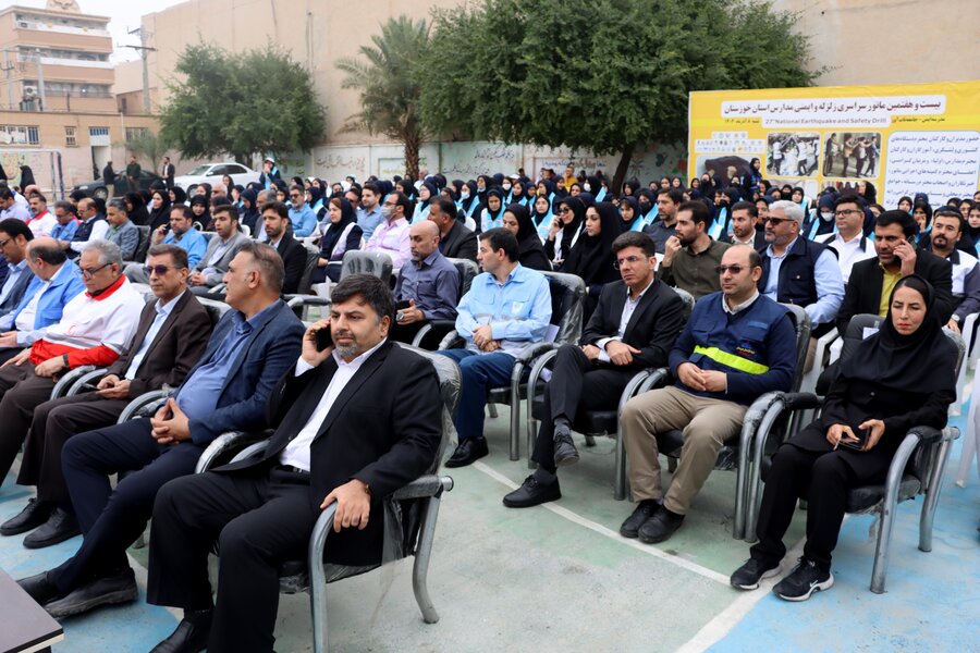 بیست و هفتمین مانور سراسری کشوری زلزله و ایمنی با شعار «مدرسه ایمن، جامعه تابآور» در مدارس استان خوزستان، با حضور مدیرکل مدیریت بحران و پدافند غیرعامل استانداری خوزستان، مدیر کل آموزش و پرورش استان، معاون مشارکتهای مردمی و مسئول مدیریت بحران و پدافند غیرعامل بهزیستی استان، تیم اورژانس اجتماعی بهزیستی و تیم محب بهزیستی و با هدف آمادگی و تاب آوری در برابر هر گونه حادثه احتمالی و رویدادهای ناشی از بلایای طبیعی برگزار شد.
