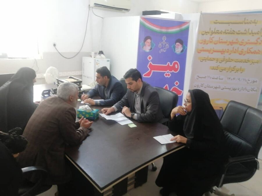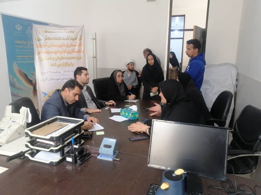 بازدید مسئولان دادگستری کارون از بهزیستی و برگزاری میز خدمت قضایی ویژه معلولان