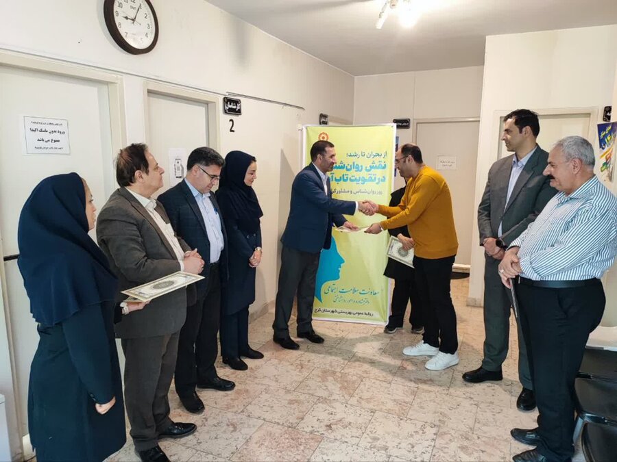 به گزارش روابط عمومی اداره کل بهزیستی استان البرز؛روز سه شنبه نهم اردیبهشت ماه "فرهاد پادری ثانی" مدیر بهزیستی شهرستان کرج، "رضا اسدی" معاون بهزیستی و مسئول حوزه پیشگیری، "مریم جمعدار" معاون حوزه اجتماعی و "سید رضا هاشمی" مسئول امور بازرسی به همراه کارشناسان موضوعی با هدف قدردانی از زحمات کارکنان مرکز و ارزیابی کیفیت خدمات ارائه شده و تأکید بر اهمیت فعالیتهای روانشناسان در ارتقاء سلامت روان جامعه از مرکز جامع مشاوره و خدمات روانشناختی دولتی با مدیریت "حسین فراغت" بازدید و بر لزوم ارتقاء سطح خدمات و آموزشهای مستمر تأکید نمودند. در پایان این دیدار لوح سپاسی از سوی مدیر بهزیستی شهرستان کرج به روانشناسان محترم مرکز اهداء و از خدمات ارزشمند آنان قدردانی شد.