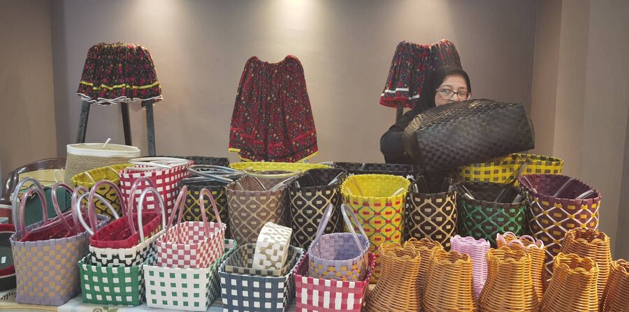 در این نمایشگاه، اداره بهزیستی با ۴ غرفه شامل محصولات خانگی، تابلوهای نقاشی، لباسهای سنتی، صنایع دستی و حصیربافی تولیدشده توسط توانخواهان شرکت کرده است.