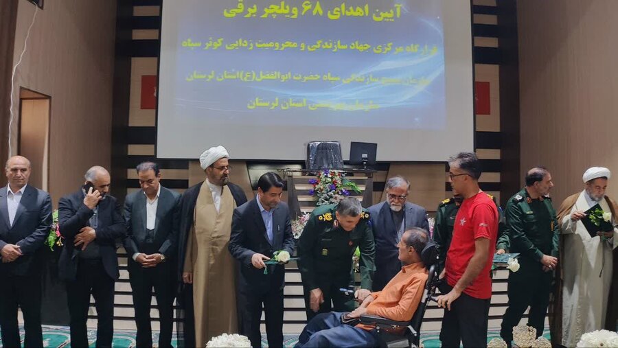 🔸خرم آباد[] آئین اهدا ۶۸ دستگاه ویلچر برقی به نیابت از شهداس لرستان و شهدای راه خدمت با همکاری سازمان بسیج سازندگی سپاه حضرت ابوالفظل (ع) استان لرستان و اداره کل بهزیستی استان و با حضور سردار حزنی معاون هماهنگ‌کننده قرارگاه محرومیت‌ زدایی جهاد سازندگی سپاه، سردار باقری فرمانده سپاه حضرت ابوالفظل لرستان، مدیر کل بهزیستی لرستان و مدیر کل کمیته امداد امام (ره)