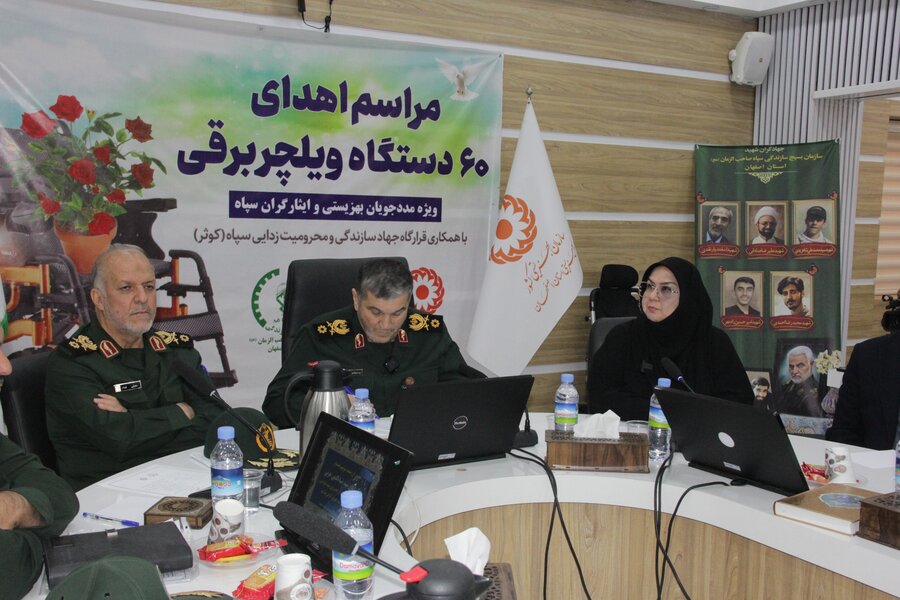 همزمان با سالگرد شهدای خدمت، آیین اهدای ۶۰ دستگاه ویلچر برقی ویژه مددجویان بهزیستی و ایثارگران سپاه با همکاری قرارگاه جهاد سازندگی و محرومیتزدایی سپاه (کوثر) با حضور سرتیپ پاسدار سیدضیاءالدین حزنی معاون هماهنگکننده قرارگاه مرکزی جهادسازندگی و محرومیتزدایی سپاه، سرتیپ پاسدار مجتبی فدا فرمانده سپاه صاحبالزمان استان اصفهان، سمیه کریمی سرپرست اداره کل بهزیستی استان اصفهان و جمعی از مسئولین استانی برگزار شد.