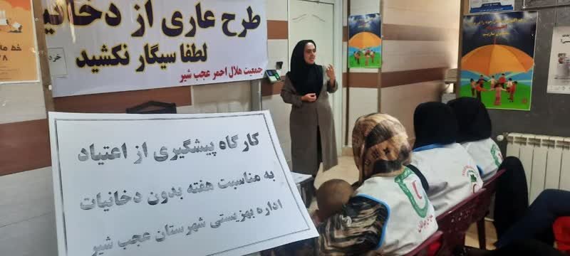 به مناسبت هفته مبارزه با مصرف دخانیات کارگاه "پیشگیری از مصرف دخانیات" برای پرسنل هلال احمر عجب شیر توسط مرکز مثبت زندگی بهزیستی شهرستان برگزار شد.
