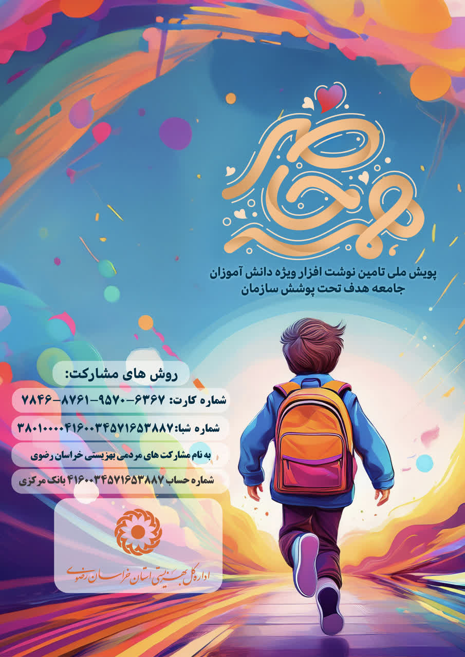 گاهی یک بسته مداد یا یک دفتر، مسیر آینده یک کودک را روشن میکند. از شهریور تا مهر، با کمک شما خیرین و داوطلبان، کولهپشتی و نوشتافزار دانشآموزان نیازمند را آماده میکنیم تا هیچ کودکی بدون لوازمالتحریر سال را شروع نکند. پویش «همه حاضر» منتظر دستهای گرم شماست. با هم، مهر را برای همه دانشآموزان مهربانتر کنیم