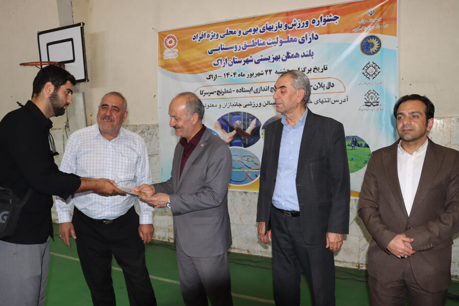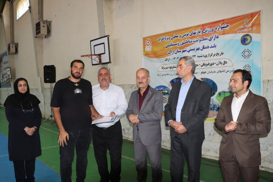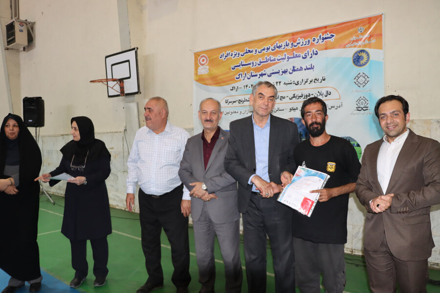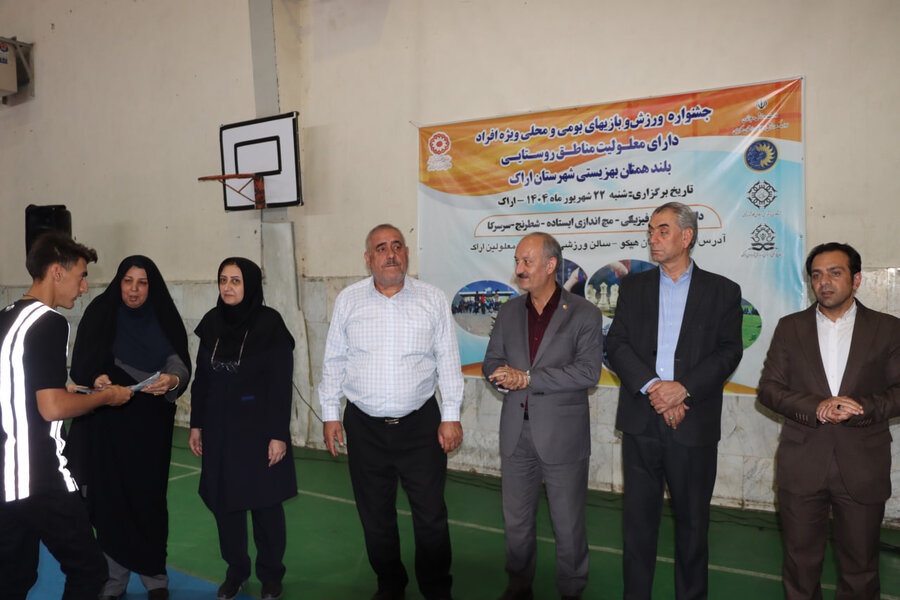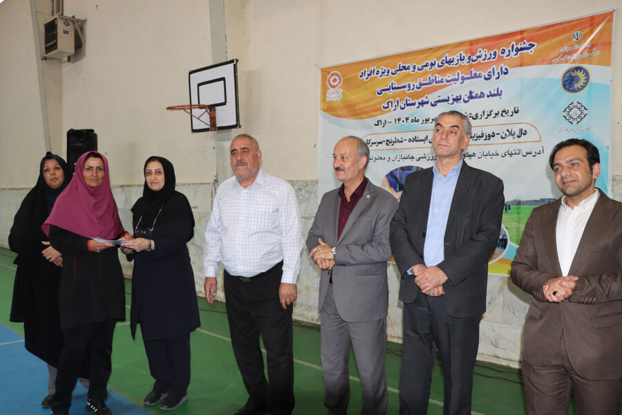جشنواره ورزش و بازیهای بومی و محلی ویژه افراد دارای معلولیت مناطق روستایی بهزیستی شهرستان اراک در سالن ورزشی جانبازان و توانیابان با حضور مسئولین و ورزشکاران برگزار گردید