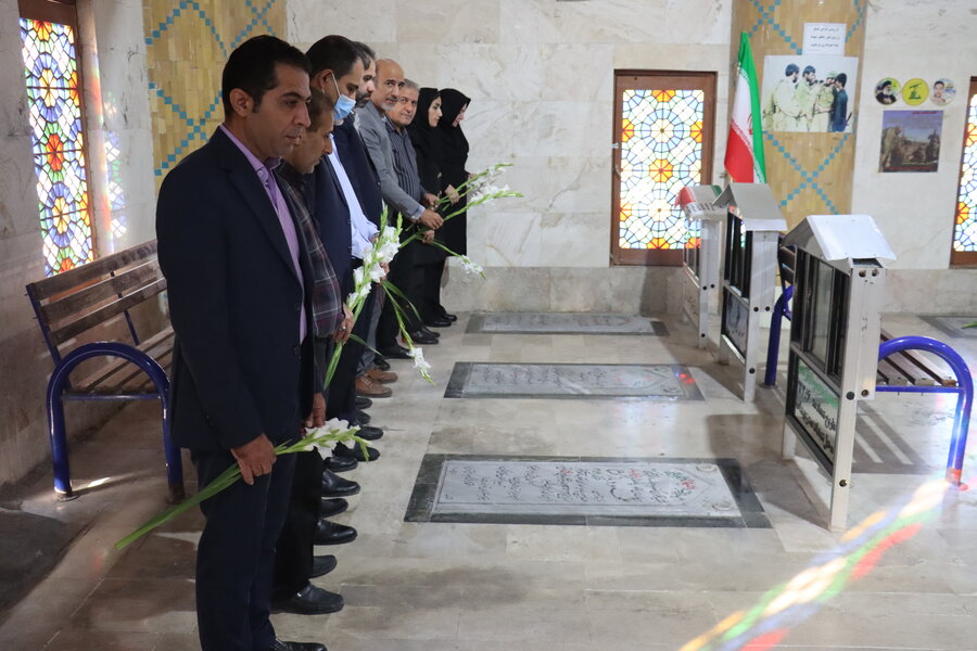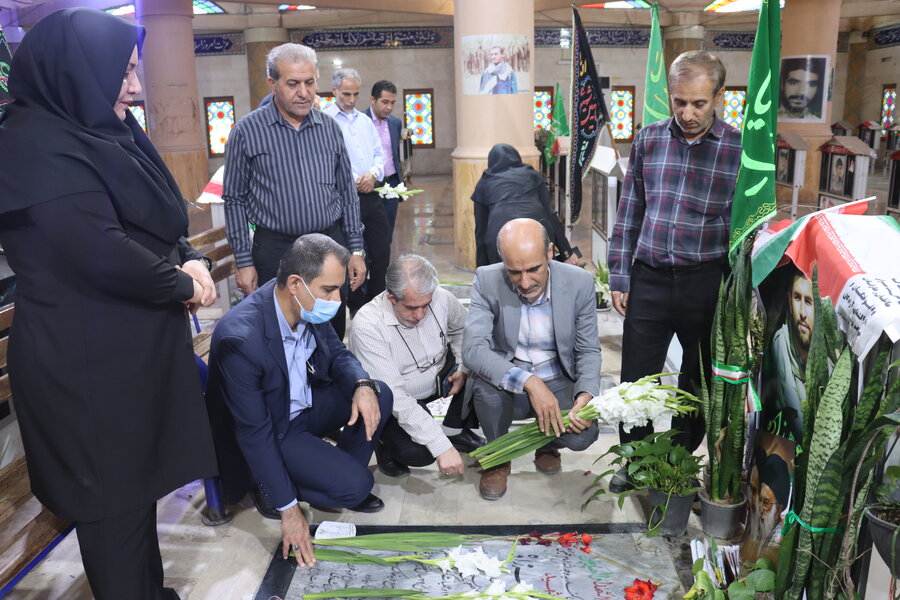 با هدف تجدید میثاق با آرمان‌های والای شهدا و امام شهدا (ره) و ارج نهادن به مقام شامخ ایثارگران و همزمان با آغاز هفته گرامیداشت دفاع مقدس و نخستین روز کاری «مهرناز اسکندری» سرپرست جدید اداره کل بهزیستی استان بوشهر، مراسم معنوی غبارروبی و عطرافشانی گلزار مطهر شهدای بوشهر با حضور پرشور سرپرست، مسئولین، کارکنان بهزیستی استان در گلزار شهدای شهر بوشهر برگزار شد.