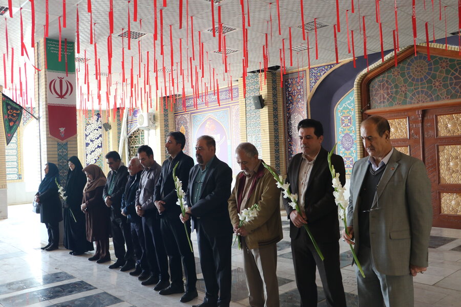 در اولین روز از گرامیداشت هفته دفاع مقدس دکتر کاظم زاده سرپرست اداره کل بهزیستی استان به همراه معاونین و جمعی از همکاران اداره کل بهزیستی خراسان شمالی برای ادای احترام و گرامیداشت یاد و خاطره هشت سال دفاع مقدس در مزار شهدای گمنام بجنورد حضور یافتند