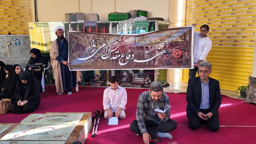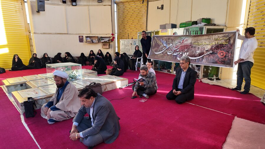 به مناسبت هفته دفاع مقدس دکتر محمدزاده سرپرست اداره کل بهزیستی و جمعی از پرسنل بهزیستی قم ضمن تجدید پیمان با آرمانهای شهدا، قبور مطهر شهدای گمنام کوه خضر نبی را غبار روبی و عطر افشانی کردند.  شرکت کنندگان در این آیین معنوی بعد از زیارت پرفیض عاشورا با قرائت فاتحه و  شست و شوی قبور مطهر شهدای گمنام برای علو درجات شهدا دعا کردند.