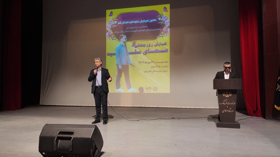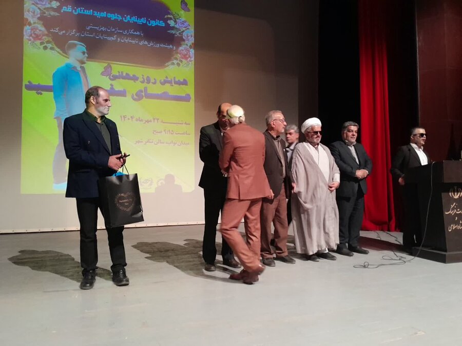 مراسم روز جهانی عصای سفید به همت کانون نابینایان جلوه امید قم ، اداره کل بهزیستی، هیئت ورزشهای نابینایان و کم بینایان و ... و با حضور دکتر محمدزاده سرپرست و معاونین این سازمان ، دکتر منصور رضوانی مدیر عامل کانون و نابینایان قمی برگزار شد.