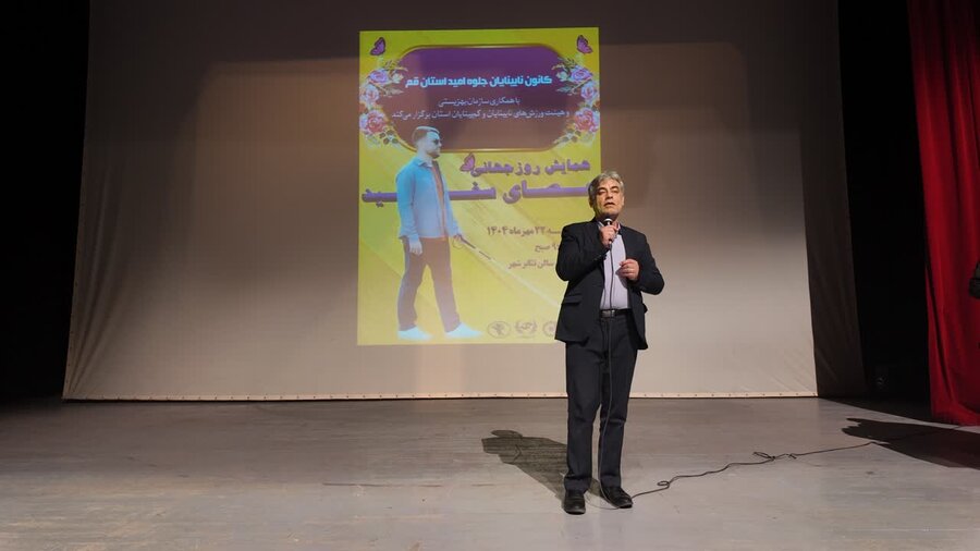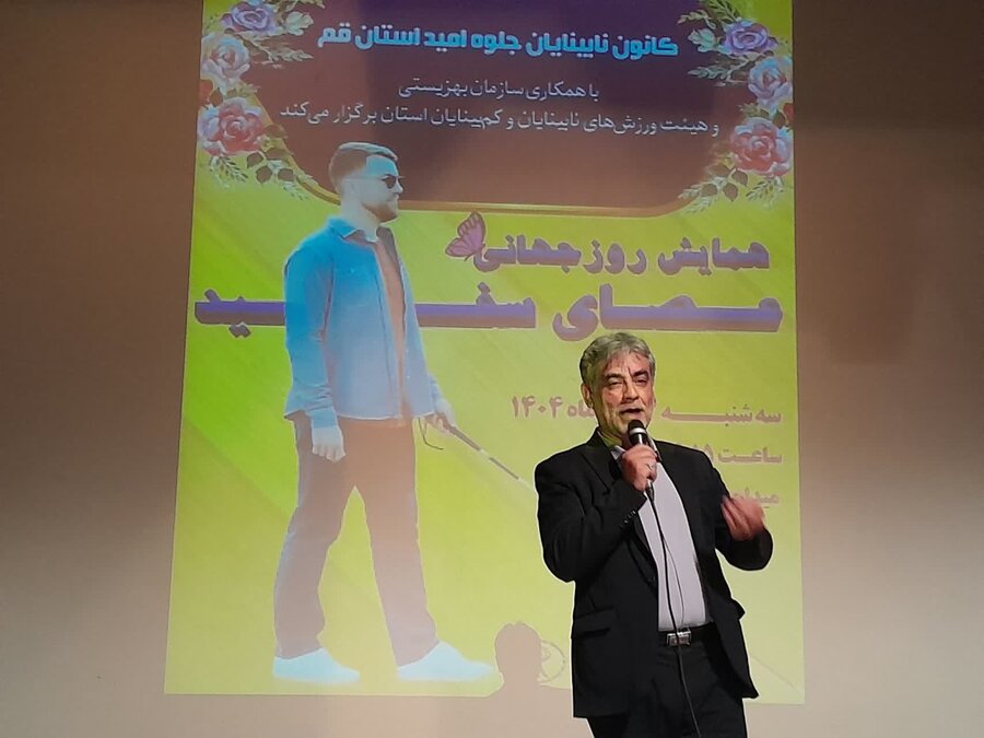 در این مراسم دکتر محمدزاده سرپرست ضمن تبریک این روز گزارشی از خدمات بهزیستی به جامعه 3000 نفری نابینایان قم در مباحث توانبخشی ، حمایتی ، اشتغال ، مسکن و .... ارائه کرد وحجت الاسلام دکتر منصور رضوانی مدیرعامل کانون نابینایان جلوه امید استان قم هم در سخنانی با بیان اینکه ما بیش از ۲ هزار ۷۰۰ نفر نا بینا و کم بینا در سطح استان داریم و حدود ۶۰۰ نفر که قابلیت آموزش پذیری و توانمند سازی را دارند تحت پوشش کانون نابینایان هستند.