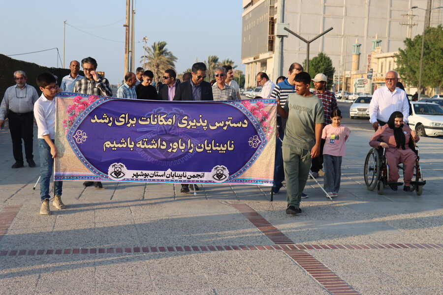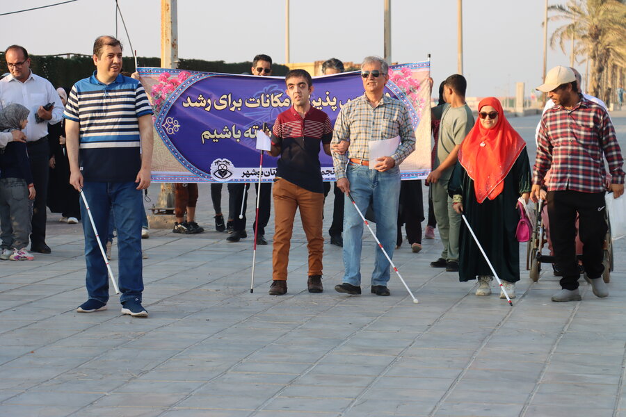 به مناسبت گرامیداشت روز جهانی عصای سفید همایش پیاده روی با حضور مهرناز اسکندری سرپرست ،معاون توانبخشی بهزیستی استان،مدیر بهزیستی شهرستان و با همکاری سازمان فرهنگی ورزشی شهرداری بندر بوشهر و همچنین خیل گسترده نابینایان به همراه جشن روز جهانی نابینایان در کنار دریای نیلگون تا ابد خلیج فارس شهر بوشهر برگزار شد.
