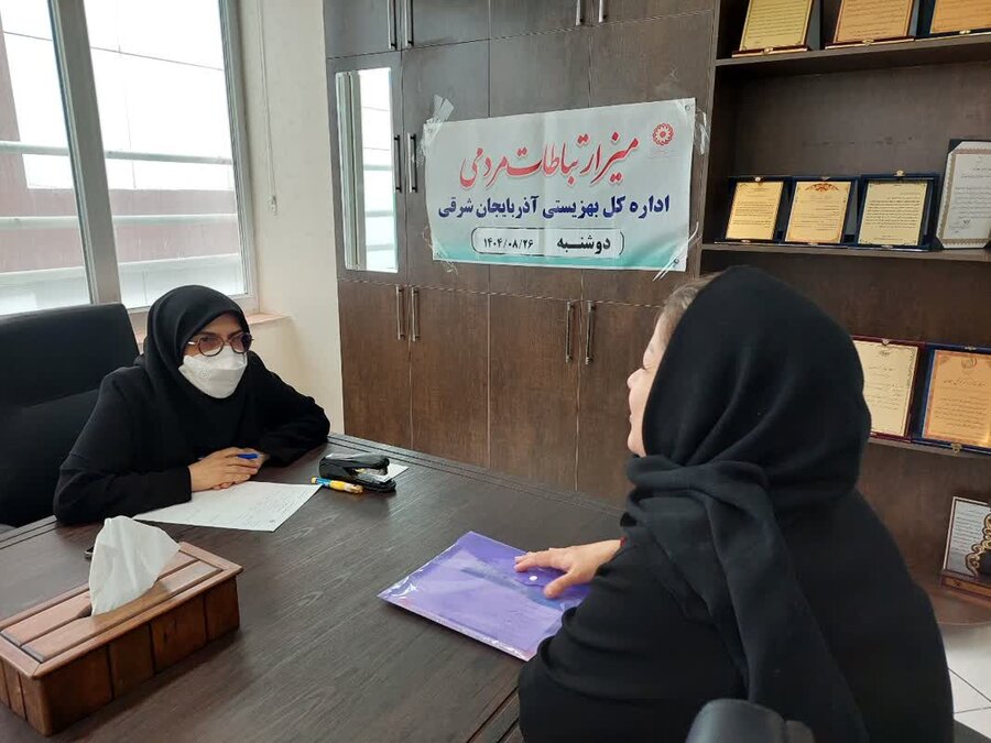 استانها آذربایجان شرقی ۲۶ آبان ۱۴۰۴ - ۱۱:۲۲ دریافت تصاویر گزارش تصویری| ملاقات مردمی مدیرکل بهزیستی با جامعه هدف مدیرکل بهزیستی آذربایجان شرقی، طی ملاقات با جامعه هدف بهزیستی در "دوشنبه های مردمی" به مسائل و مشکلات آنان رسیدگی کرد.