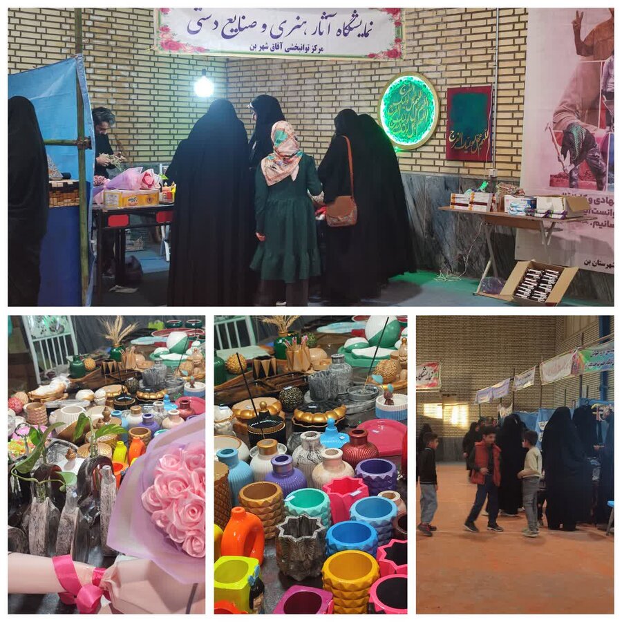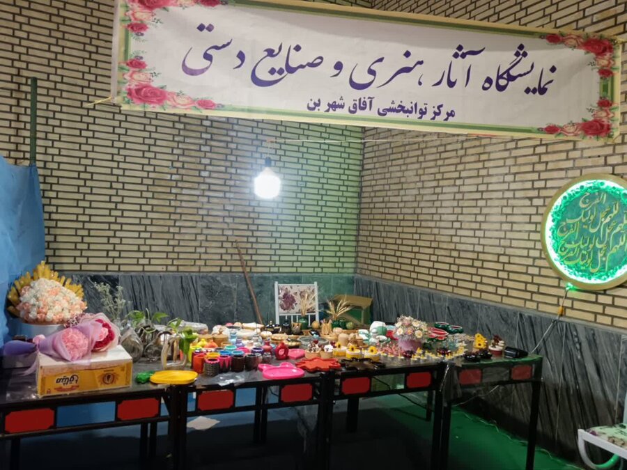 محصولات و صنایع دستی مددجویان مرکز توانبخشی آفاق شهرستان بن از بیست وهشتم تا یکم آذر در قالب نمایشگاه در معرض دید عموم مردم قرار گرفت.
