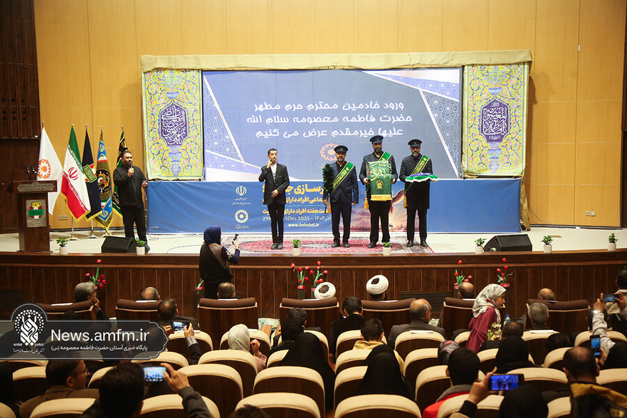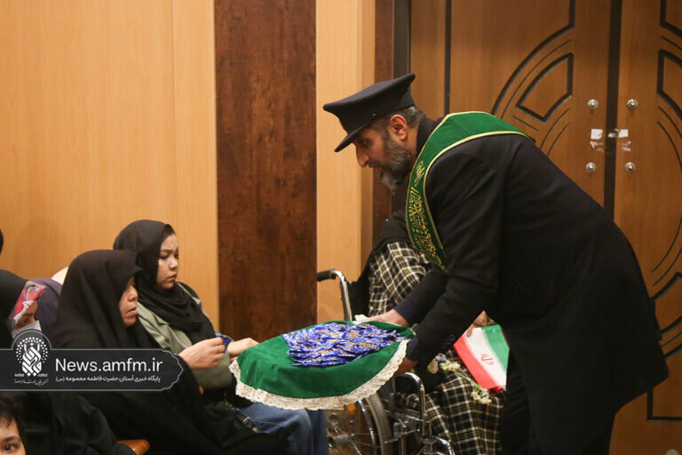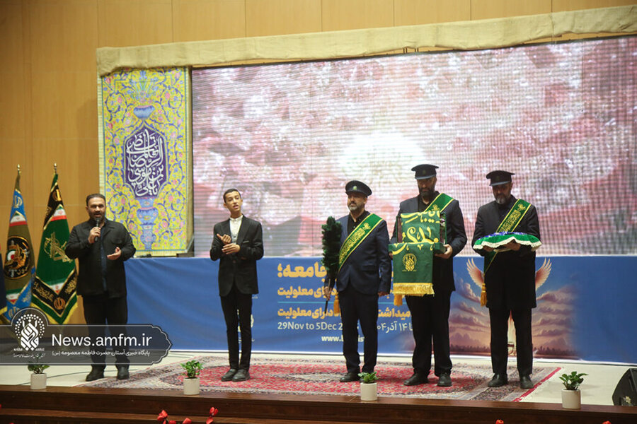 آیین گرامیداشت معلولان استان قم امروز 12 آذر به مناسبت روز جهانی معلولان با حضور خادمان حرم مطهر بانوی کرامت به همراه پرچم گردانی و توزیع متبرکات آستان مقدس حضرت فاطمه معصومه سلاماللهعلیها در سالن اجتماعات باغ موزه دفاع مقدس قم برگزار شد.
