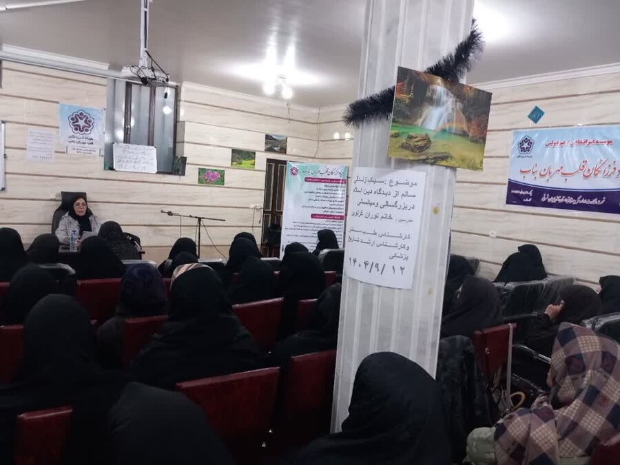 کارگاه آموزشی با حضور ۱۱۲ نفر از اعضای بنیاد فرزانگان قلب مهربان بناب تشکیل شد . ابتدا مدرس کارگاه در رابطه با سبک زندگی سالم در اسلام ؛ تغذیه سالم و اندازه ، تحرک روزانه ، ورزش، خواب کافی و آرام رعایت بهداست فردی، مدیریت استرس و خشم ، روابط سالم و مهربانی ، یاد خدا و عبادت منظم، اخلاق نیکو پرهیز از آلودگی های رفتاری و.... سخنرانی کرد وسپس به سوالات پاسخ دادند.