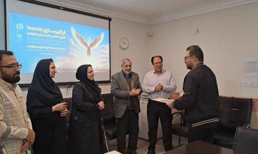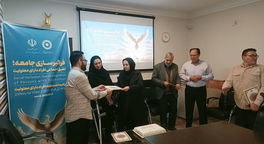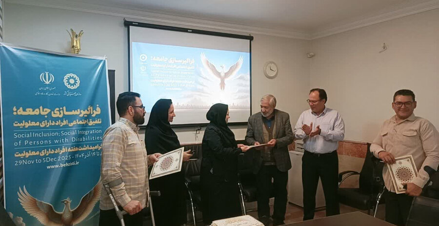 به گزارش روابط عمومی اداره کل بهزیستی استان البرز؛در مراسمی به مناسبت گرامیداشت هفته افراد دارای معلولیت، از همکاران دارای معلولیت شاغل در اداره بهزیستی شهرستان نظرآباد تجلیل شد.این برنامه با حضور رئیس اداره و جمعی از کارکنان برگزار و لوح سپاس به این عزیزان اهداء شد. "هنگامه شورجه" رئیس اداره بهزیستی شهرستان نظرآباد ضمن تقدیر از تلاش‌ها و روحیه بالای همکاران دارای معلولیت آنان را الگوی پشتکار، تعهد و شایستگی در محیط کار دانست و بر نقش اثربخش آنان در ارتقاء کیفیت خدمات سازمان تأکید کرد.
