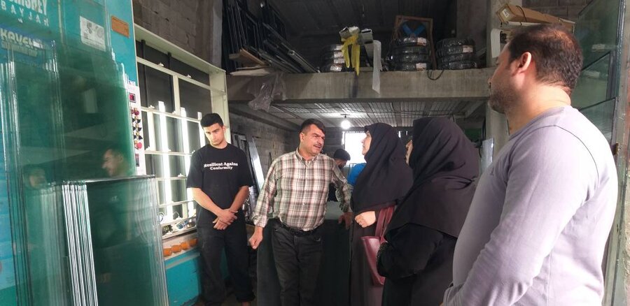 هم‌زمان با گرامیداشت هفته افراد دارای معلولیت، شهلا شاهمنصوری رئیس اداره بهزیستی شهرستان به‌همراه کارشناس توانبخشی از کارگاه شیشه‌بری یکی از توانخواهان تحت پوشش این اداره بازدید کرد.