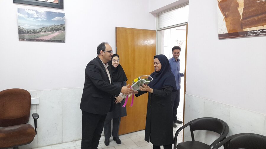 محمد نسیمی مدیرکل بهزیستی استان و روسای شهرستان های تابعه با حضور در محل کار همکاران خانم شاغل در بهزیستی استان ضمن دیدار و گفتگو روز زن و ولادت بانوی دو عالم حضرت زهرا(س) را تبریک گفتند.