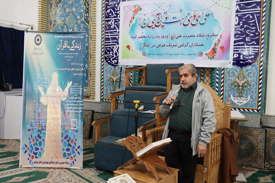 همزمان با میلاد فرخنده حضرت امام جوادالائمه (ع) و در آستانه زادروز با برکت حضرت امام علی (ع)، جشنواره فرهنگی–آموزشی «زندگی و قرآن» ویژه برادران و خواهران افراد دارای معلولیت و کارکنان بهزیستی استان بوشهر با حضور مهرناز اسکندری مدیرکل، و معاونین بهزیستی استان، شرکت‌کنندگان و خانواده‌های آنان در فضایی معنوی و صمیمی در مسجد ولایت شهر بوشهر برگزار شد.