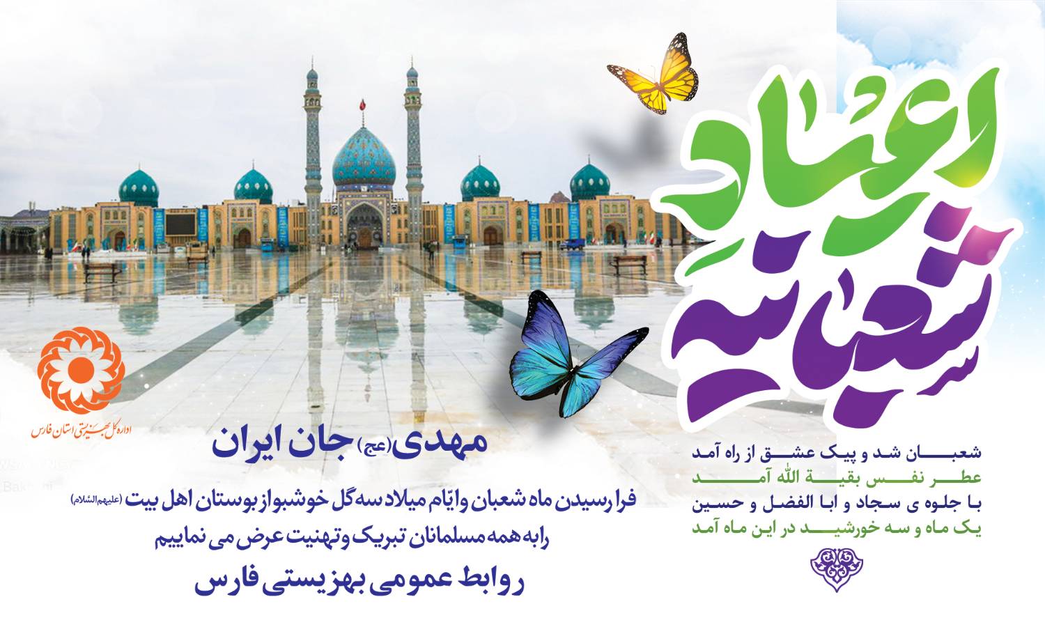استانها فارس ۱ بهمن ۱۴۰۴ - ۱۳:۱۲ دریافت تصویر فرا رسیدن ماه شعبان و اعیاد پربرکت شعبانیه ,برعموم مسلمین مبارک باد روابط عمومی بهزیستی فارس