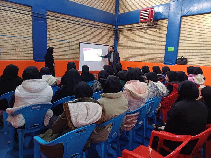 برگزاری کلاس آموزشی با عنوان فضای مجازی؛ فرصت ها و تهدیدها برای دانش آموزان هاشمیه شهر زرنق با مدرسی کارشناسان بهزیستی و اورژانس اجتماعی شهرستان هریس