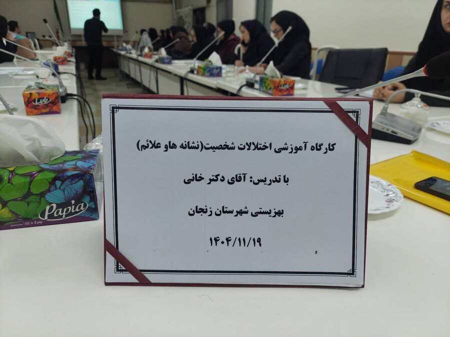 کارگاه آموزشی «اختلالات شخصیت؛ نشانهها و علائم» با هدف ارتقای دانش تخصصی و افزایش توانمندی نیروهای حوزه سلامت روان، در سالن کنفرانس بهزیستی شهرستان زنجان برگزار شد.