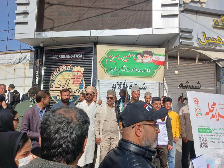 به گزارش روابط عمومی اداره بهزیستی شهرستان فسا ،به مناسبت چهل و هفتمین سال پیروزی انقلاب اسلامی و اجرای فاز اول طرح پویش سلام محله سازمان بهزیستی با " *رویکرد مشارکت اهالی محل برای بهتر زیستن* "،فاطمه رضائیان رئیس،معاون وکارشناسان اورژانس اجتماعی ،گروه های هدف بهزیستی و مسئولین و تسهیلگران مراکز خدمات بهزیستی مثبت زندگی در شهرستان فسا ، همگام با مسئولین و مردم در مراسم راهپیمایی یوم الله ۲۲ بهمن شرکت کرده و بار دیگر حماسه آفرین شدند و مشت محکمی به دهان دشمنان قسم خورده و یاوه گویان این کشور زدند.